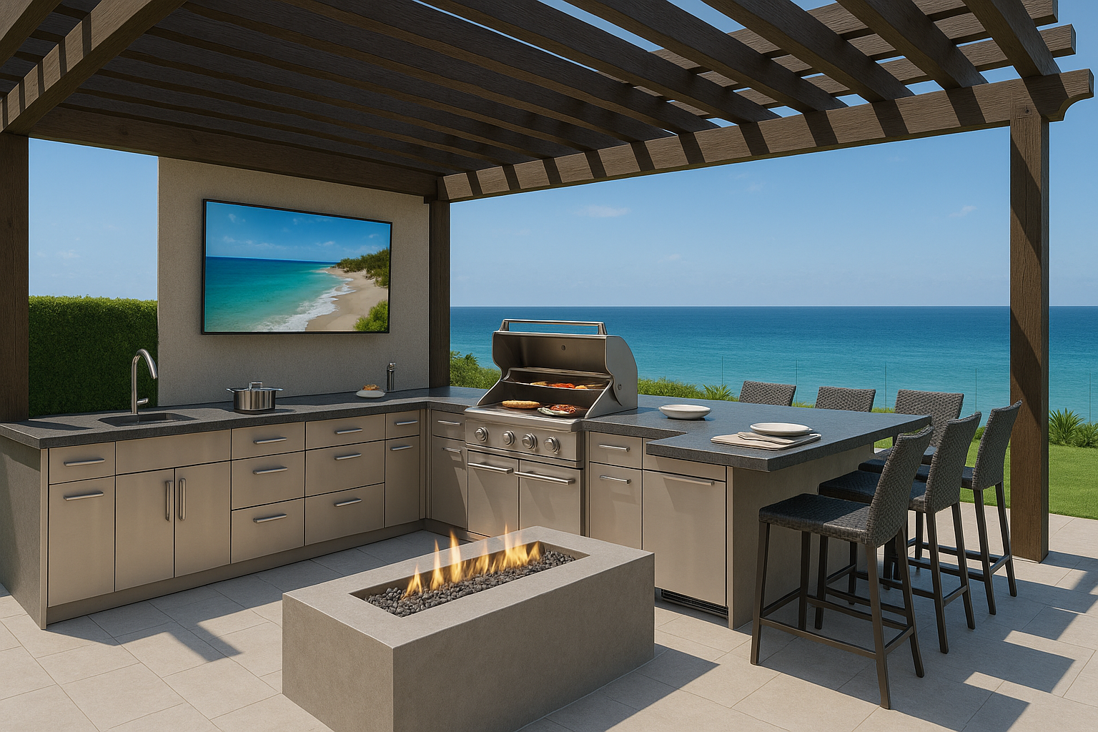 KoKoMo Bermuda BBQ Island with Oversized TV & Firepit